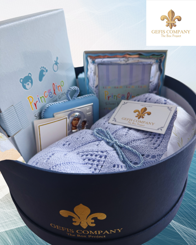 You can choose to purchase the entire Baptism Boy Box or in parts (only the silver icon of the Virgin Mary or only the baby frame)